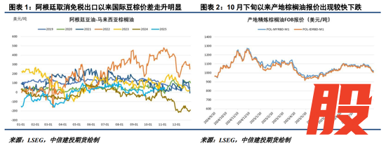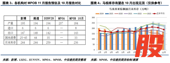 产量端,马棕10月下旬产量增长呈一定放缓倾向。UOB预计马棕10月产量环比增8%-12%,较前20日10%-14%的增幅有所下降,而10月下旬工作天数还更多。MPOA随后给的预估更高一些,其预估马棕10月产量环比增12.31%,高于UOB预估上沿,也高于目前主流机构的预估。若能实现,预计将导致马棕库存增至250万吨甚至260万吨以上,对棕榈油短期走势不利。不过,MPOA的全月产量预估并未打压连棕及马棕油至新低,暗示市场在持续计价利空预期而大跌后,对利空消息的敏感度有所下降。