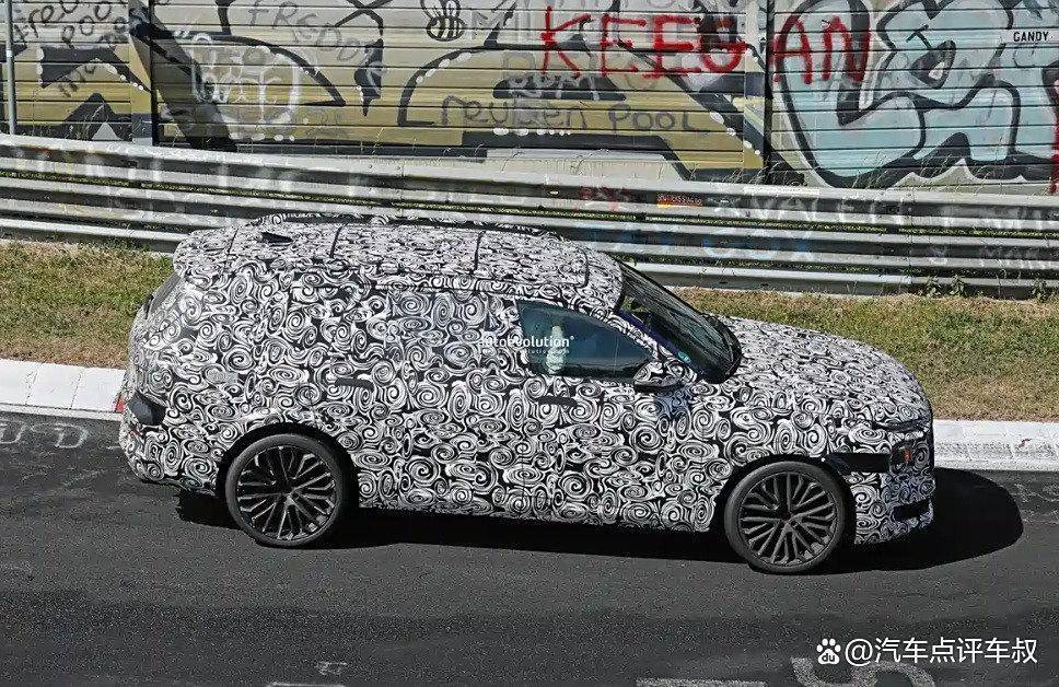 从侧面看,新车将采用大角度倾斜的车尾造型,不过没有配备超长的大尺寸扰流板,预计最终量产版会有调整。另外,新车预计车长约5米,会配备22英寸轮圈,测试车型轮胎规格为前285/40 ZR22,后325/35 ZR22。